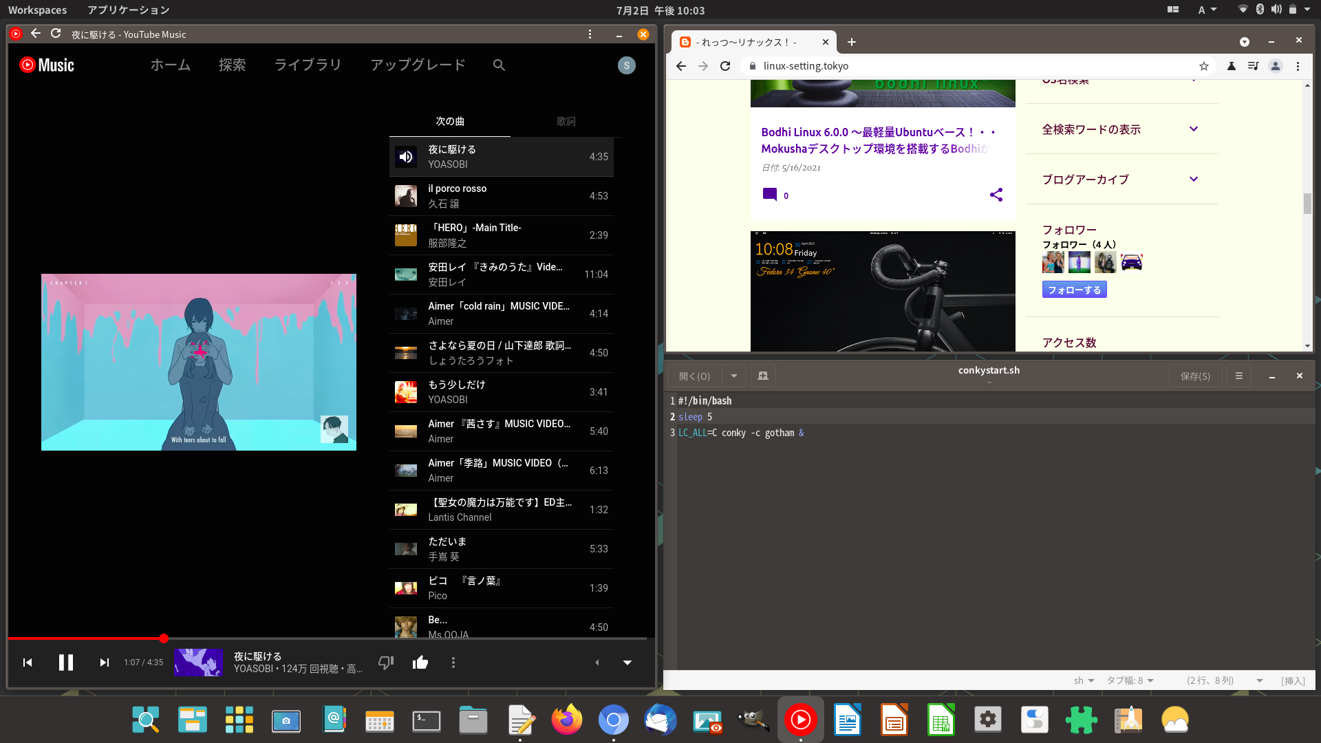 若干、日本語入力の箇所は残念でしたが、これを差し引いても見事な出来だと思います。メモリー消費量はGnome 3.38.5なので、ちょっと使用すると平気に1Gを超えていきますが、Windows 10と比較すると、かわいい物です(笑。